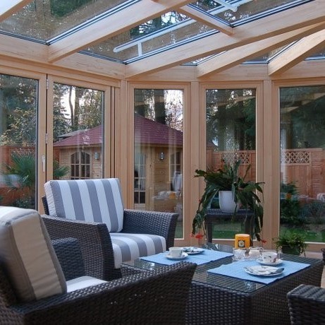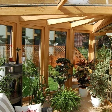 Die behagliche Atmosphäre im Inneren des Wintergartens wird durch die Wohnlichkeit der tragenden Holzkonstruktion erreicht. Kombiniert mit außen aufgebrachten Aluminiumabdeckungen ergibt sich die größtmögliche Witterungsbeständigkeit. Das SDL Avantgarde besticht durch seine individuelle Materialkombination aus Holz/Aluminium.