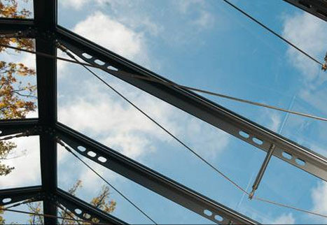 Außergewöhnliches und extravagantes Design steht im Vordergrund des Dachsystems SDL Akzent Vision. Durch integrierte Stahlseile und Knotenbleche mit Edelstahlverschraubungen wird der Kraftfluss im